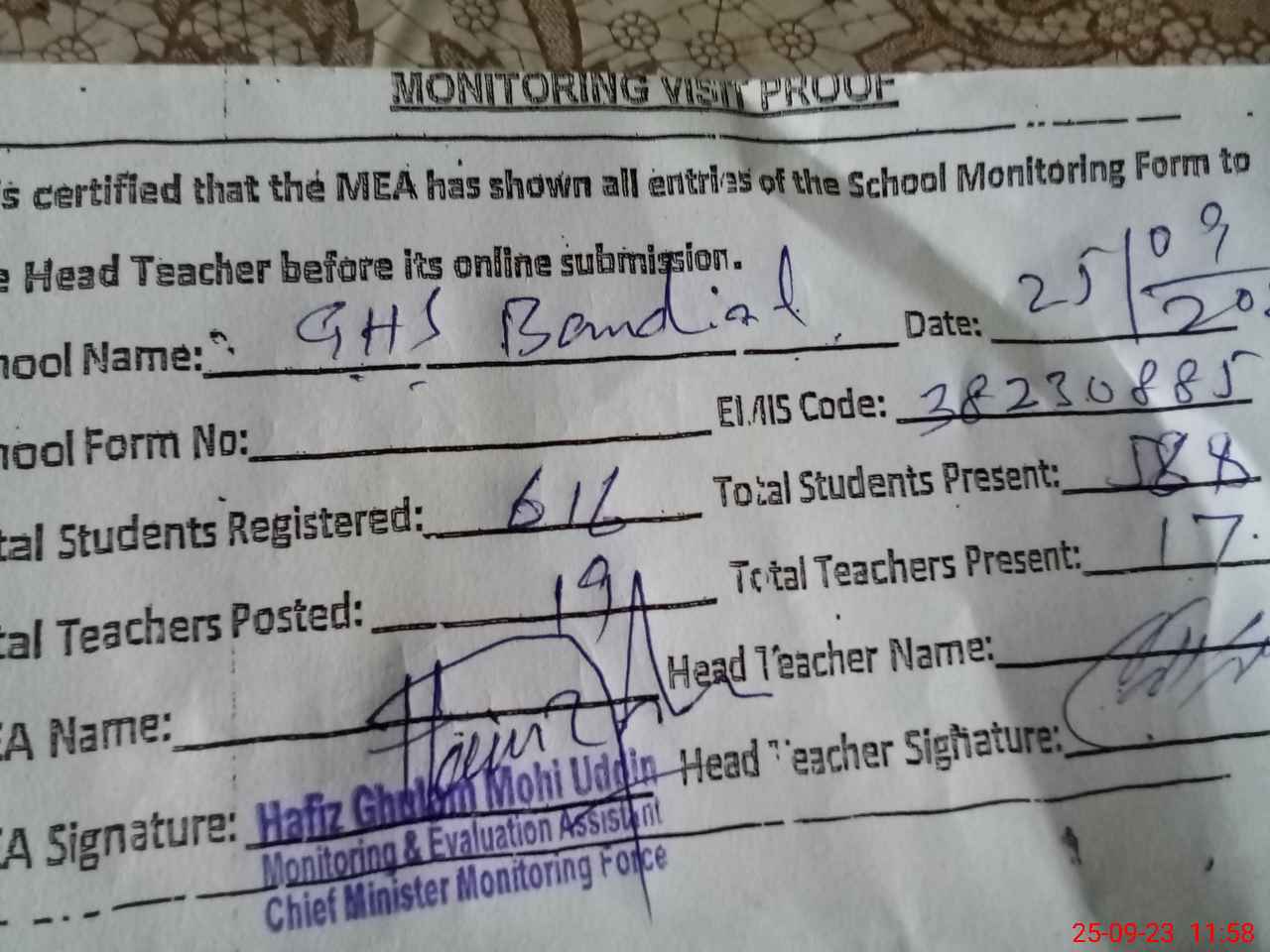 | EMIS Code: 38230885 | Name of School: GHS BANDIAL | |||
