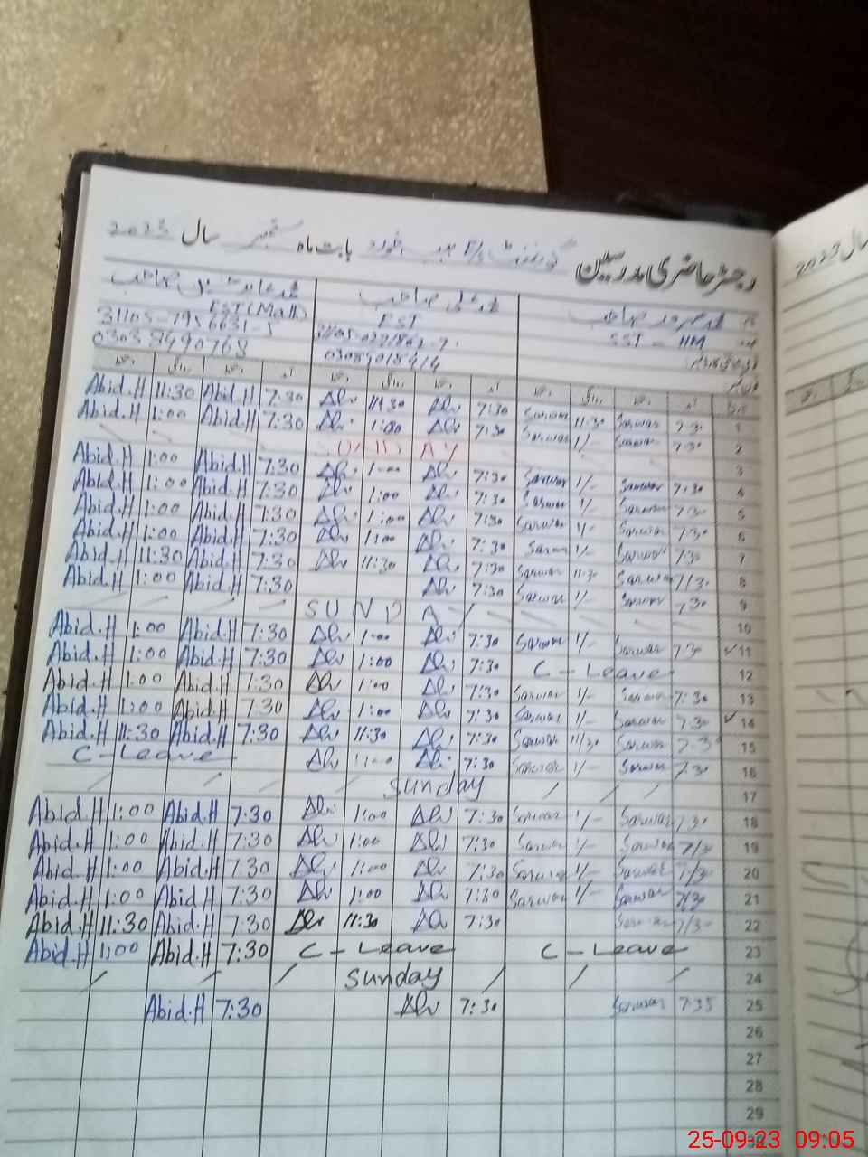| CNIC | Full Name | Designation | R/C | Absence During Last Calender Month |