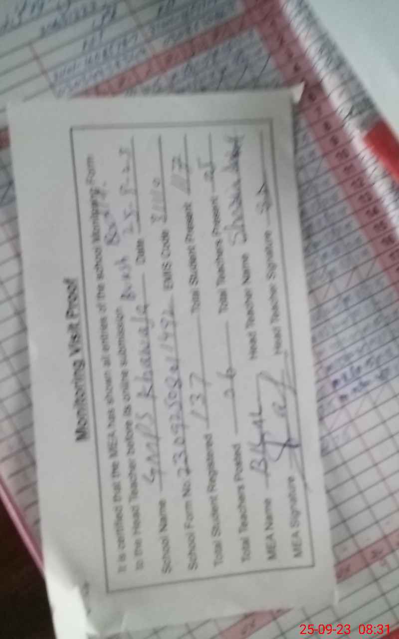 | Attendance Register | Head Teacher | MEA with School | Visit Proof |