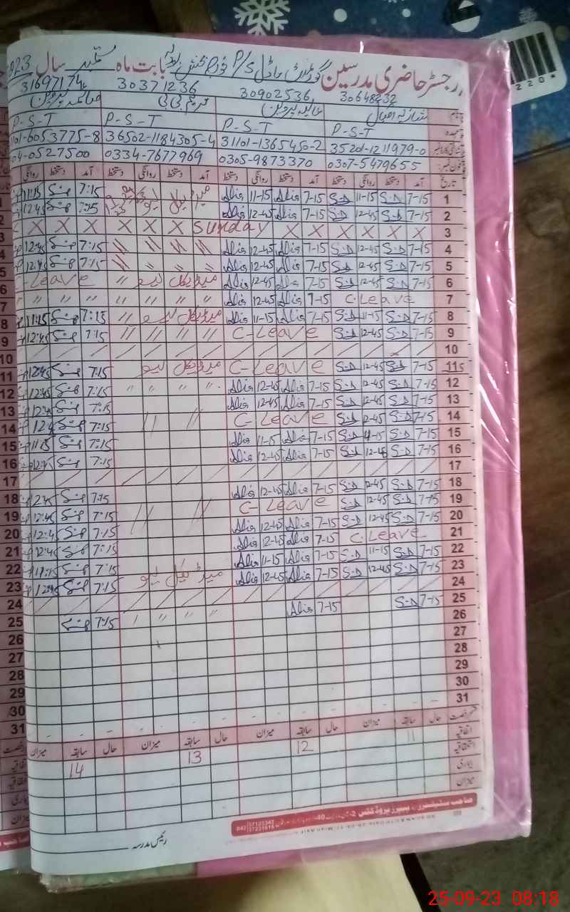| Name: SA**** PE**** Designation: (School Headmaster's/Headmistress's) PST Phone/Cell Number: 03**** |