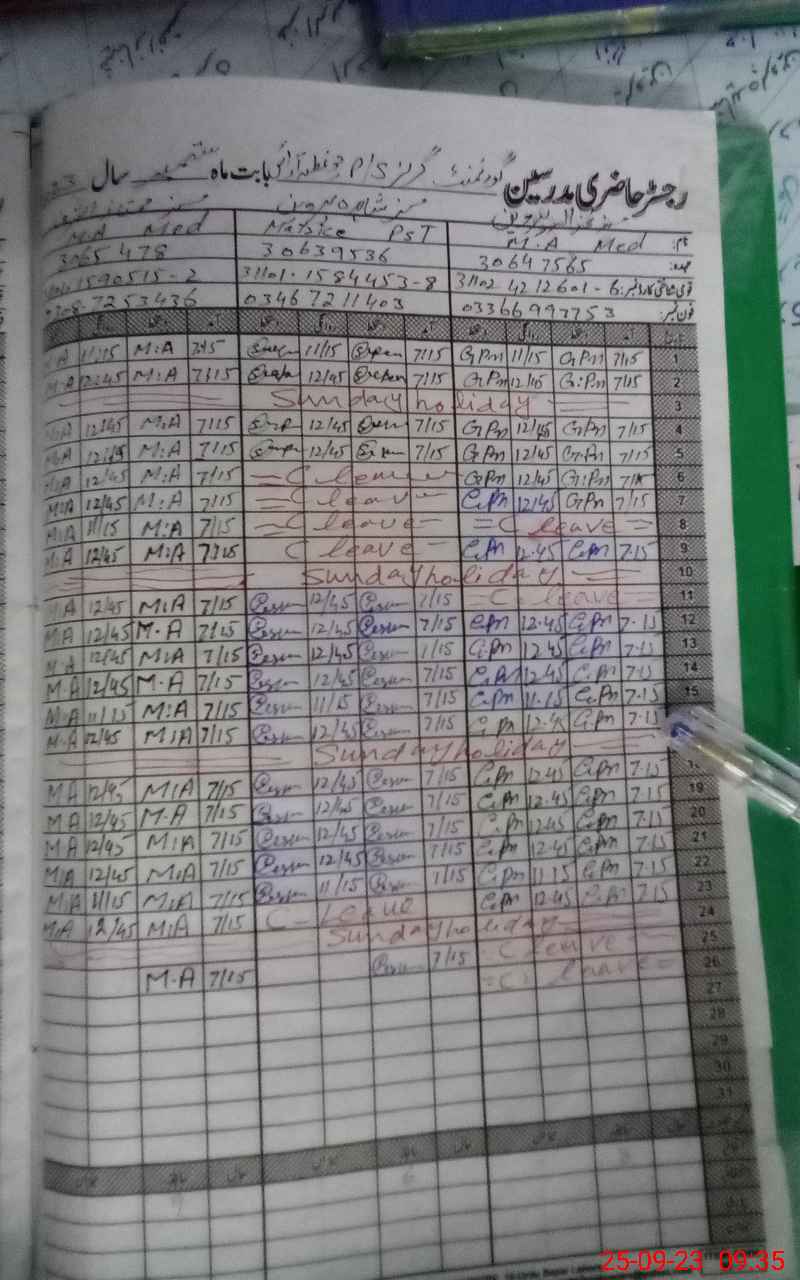 | CNIC | Full Name | Designation | R/C | Absence During Last Calender Month |