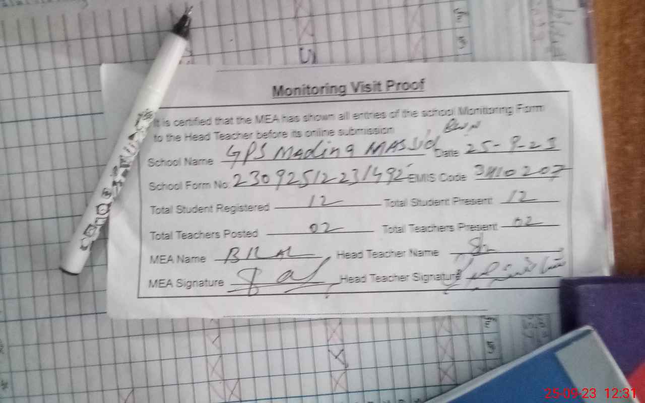 | Attendance Register | Head Teacher | MEA with School | Visit Proof |