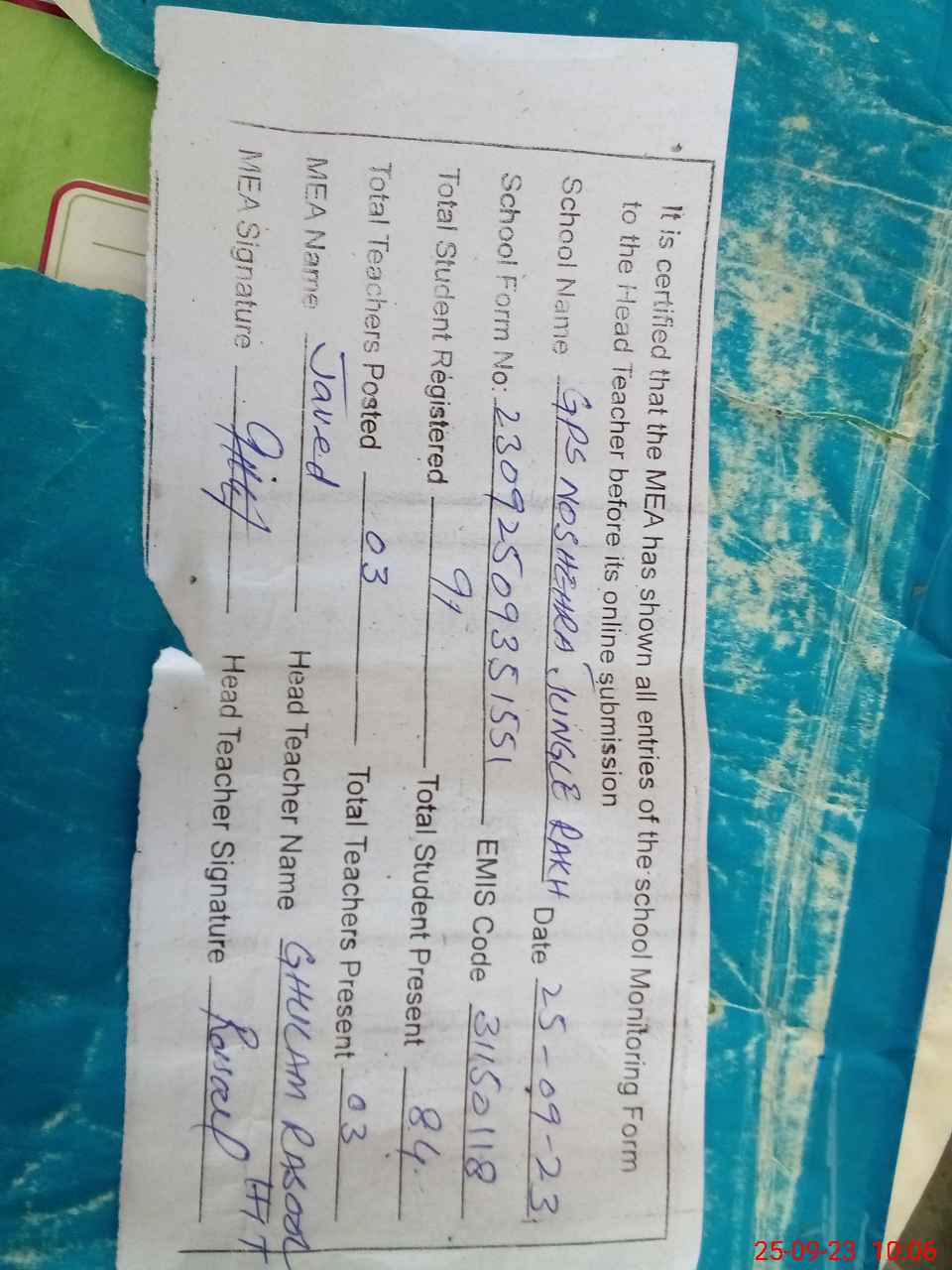 | EMIS Code: 31150118 | Name of School: GPS NOSHEHRA JUNGLE RAKH | |||