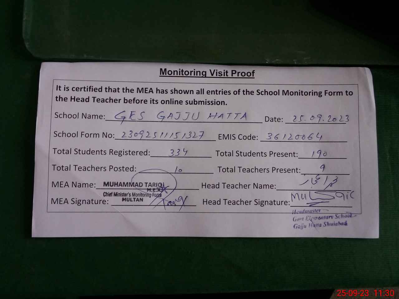 | EMIS Code: 36120064 | Name of School: GES GAJJU HATTA WARD NO 1 P/O SHUJABAD | |||