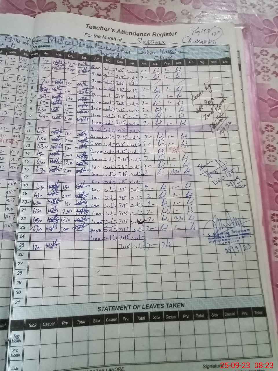 | Name: Za**** Ra**** Designation: (School Headmaster's/Headmistress's) Headmistress Phone/Cell Number: 03**** |