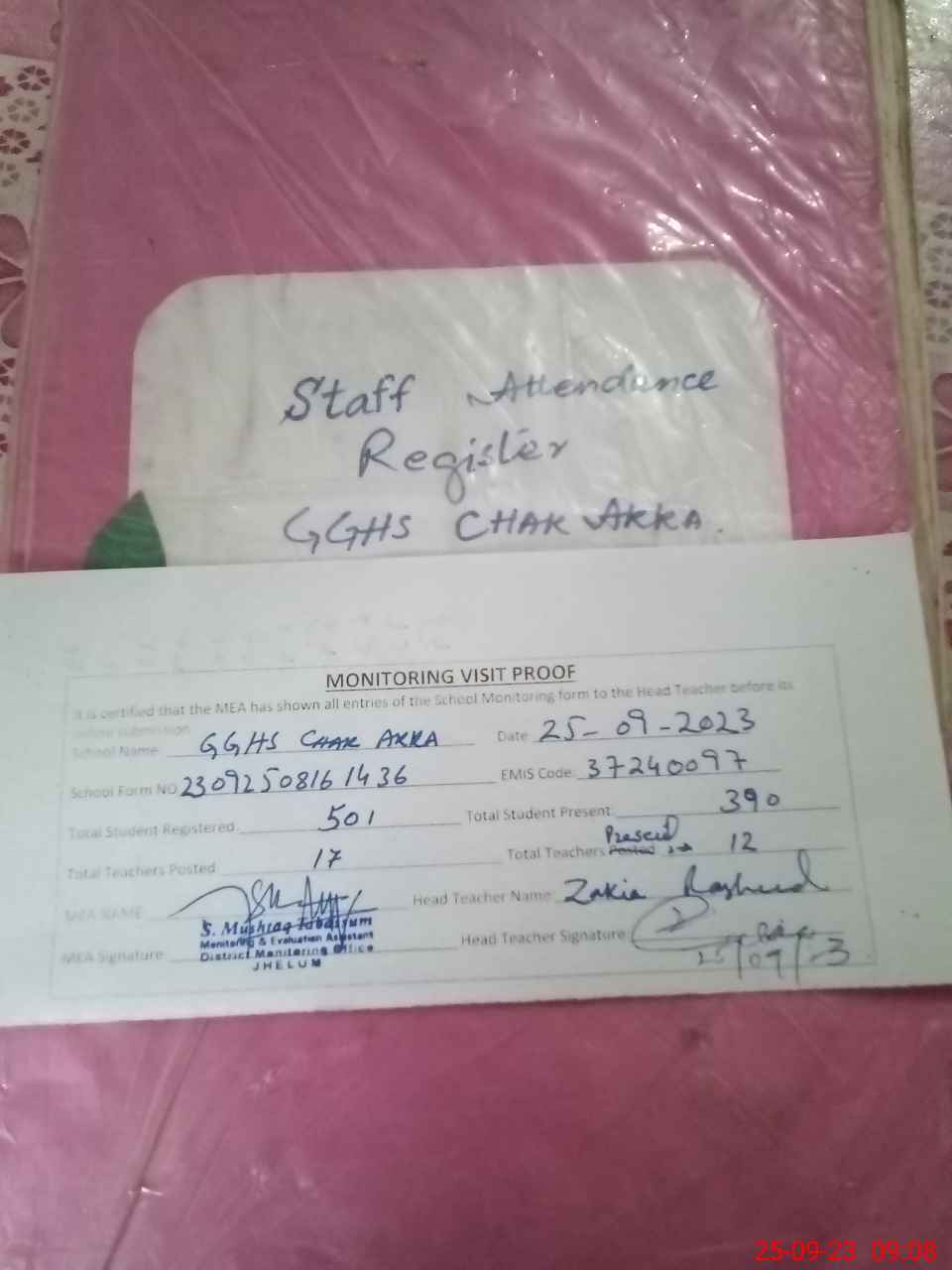 | EMIS Code: 37240097 | Name of School: GGHS CHAK AKKA | |||