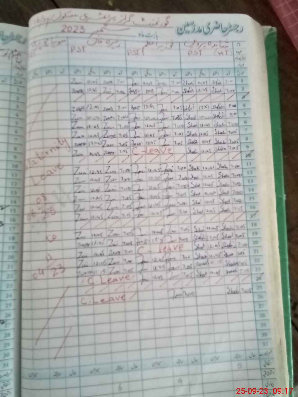 | 36**** | Zu**** Kh**** | 1 | 0 | 0 | 0 | 0 | 0 | 0 | 0 | 0 | 0 | Absent (Un-Authorized) | |