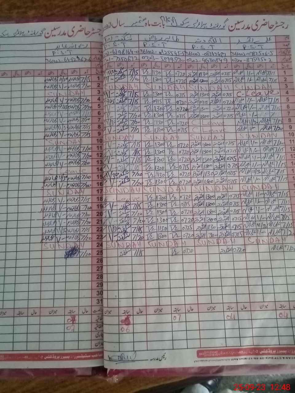 | Name: Al**** Ah**** Designation: (School Headmaster's/Headmistress's) PST Phone/Cell Number: 03**** |
