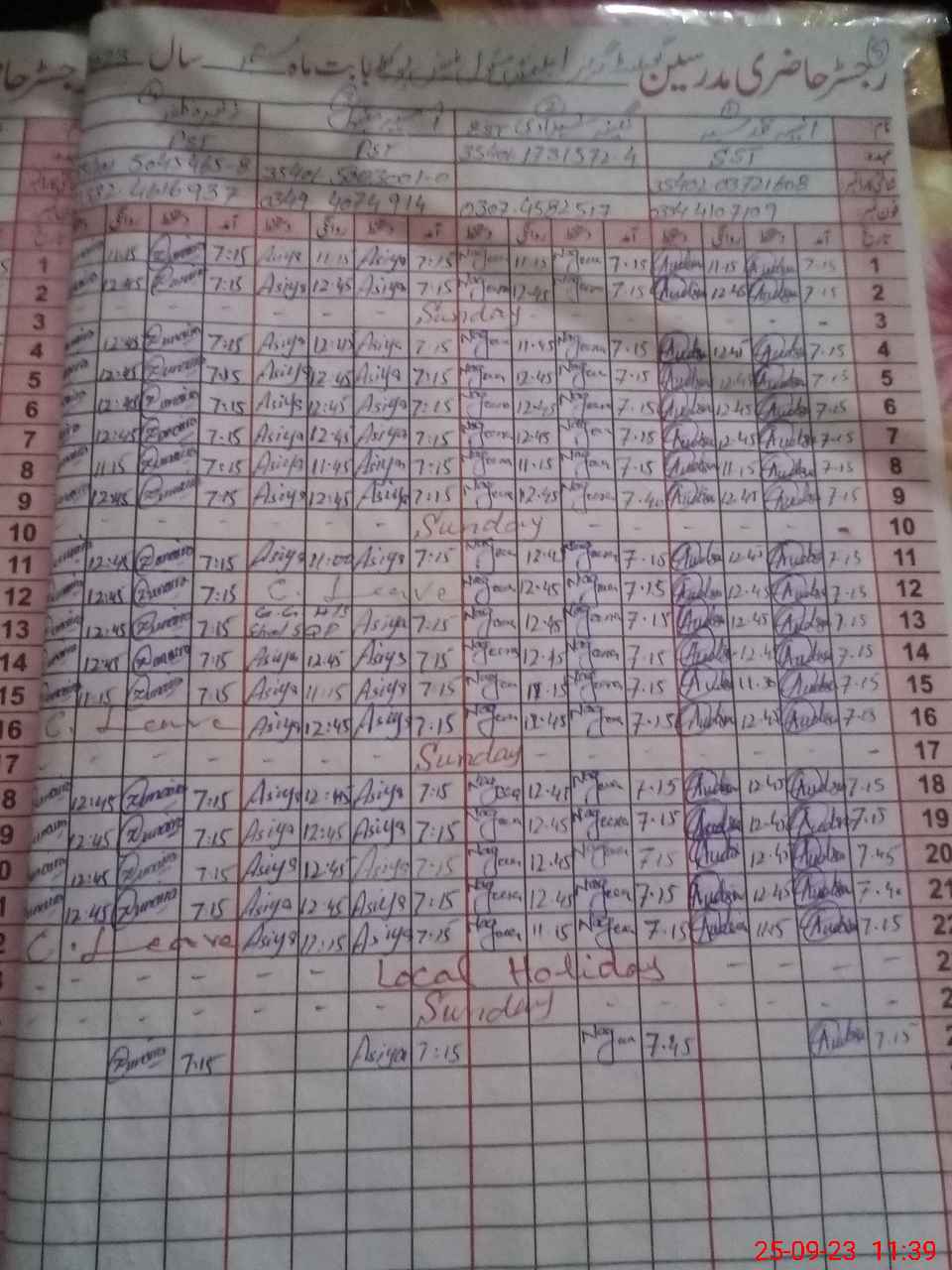 | CNIC | Full Name | Designation | R/C | Absence During Last Calender Month |