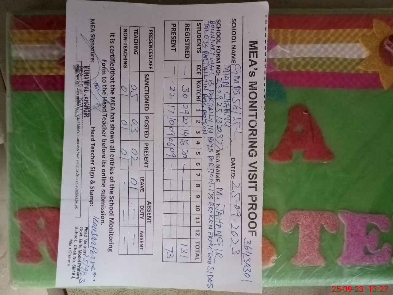 | EMIS Code: 36430301 | Name of School: GGPS 56/15-L, MIAN CHANNU | |||