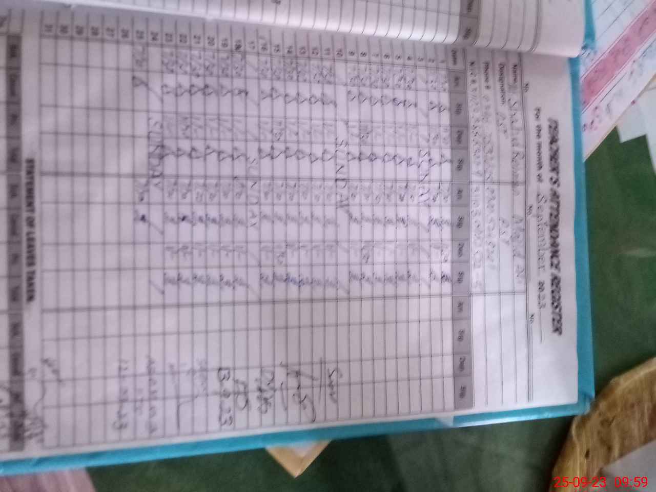 | CNIC | Full Name | Designation | R/C | Absence During Last Calender Month |