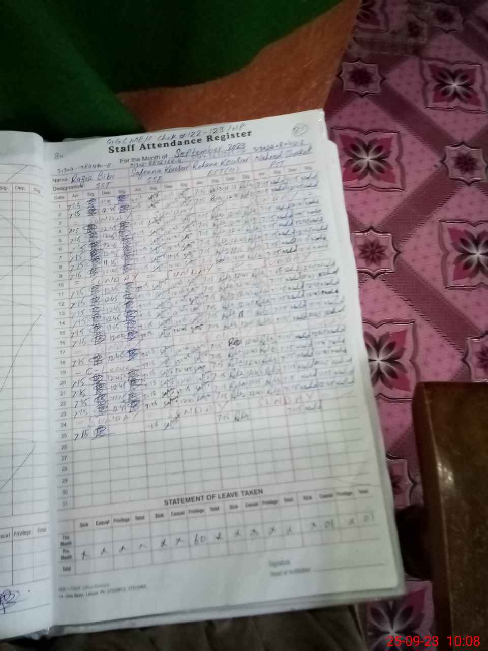 | Name: RA**** BI**** Designation: (School Headmaster's/Headmistress's) S.S.T.(G) Phone/Cell Number: 03**** |