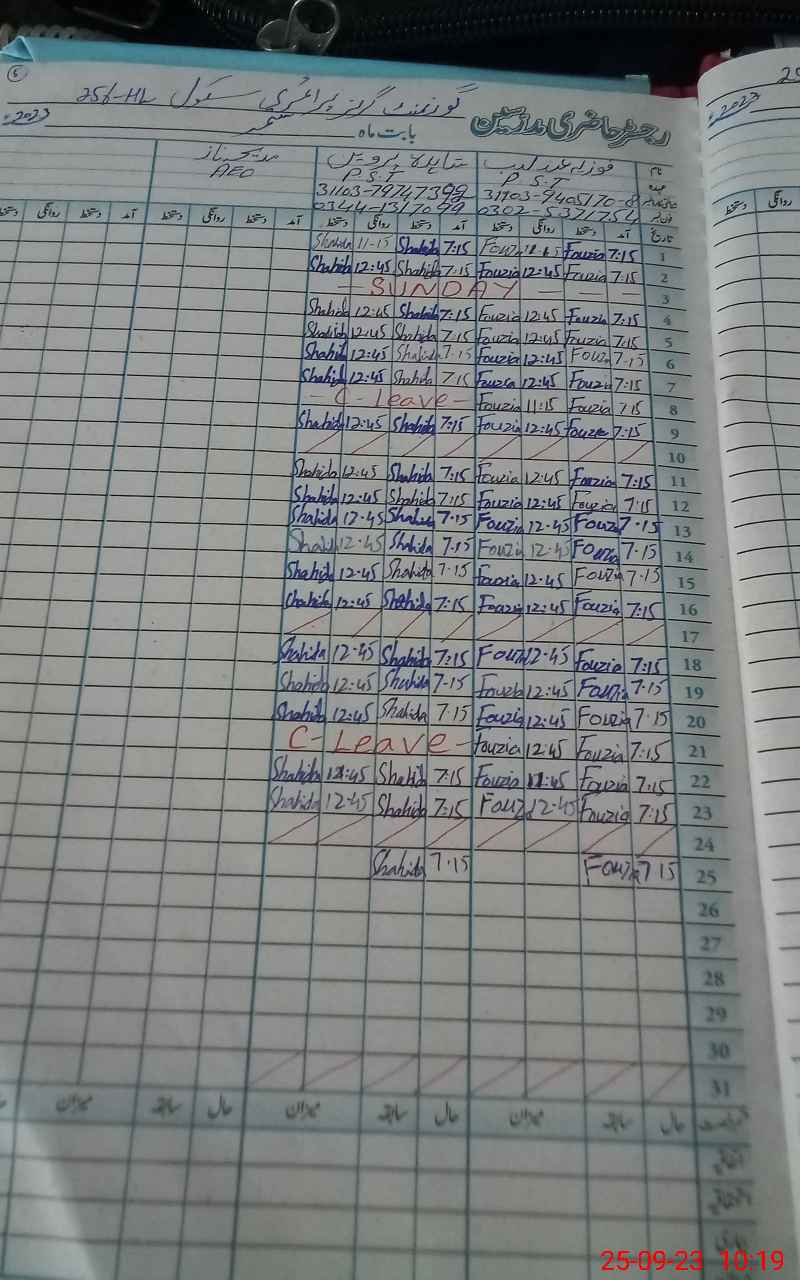 | CNIC | Full Name | Designation | R/C | Absence During Last Calender Month |
