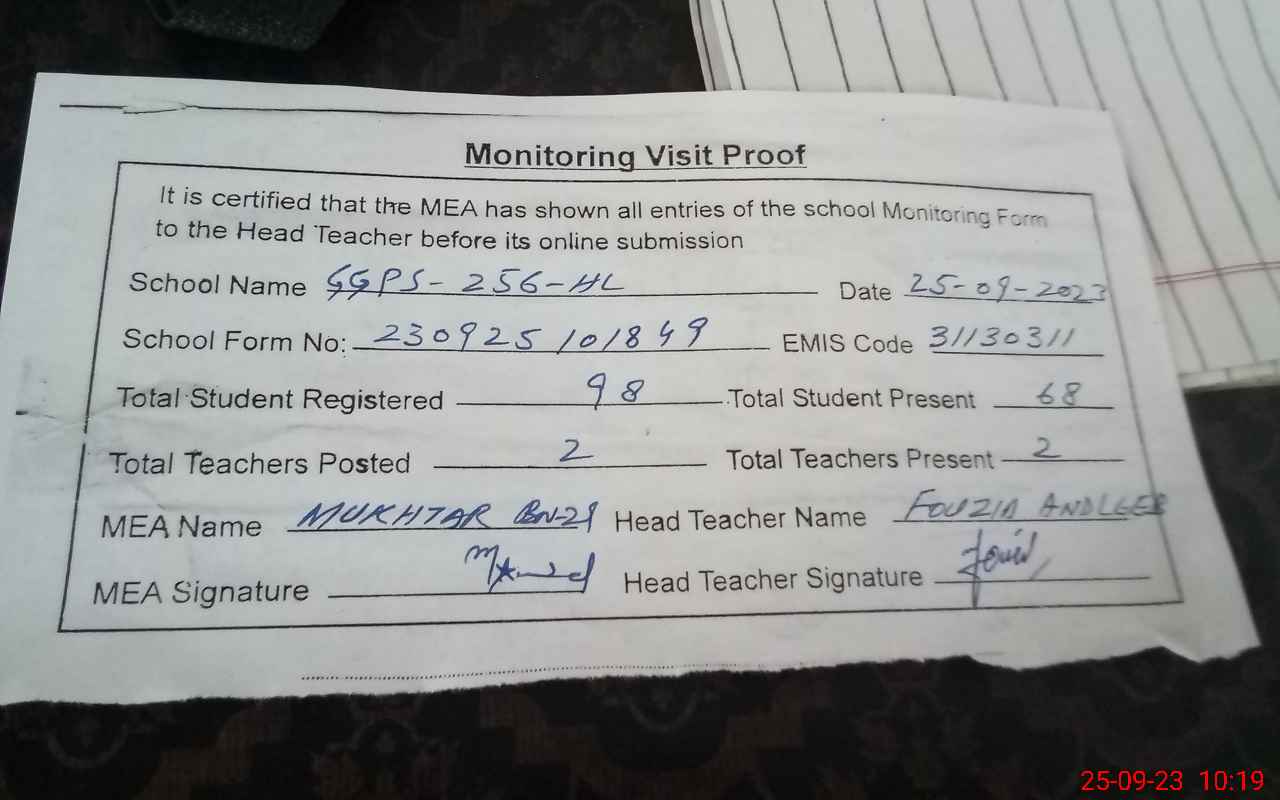 | EMIS Code: 31130311 | Name of School: GGPS CHAK NO 256/HR | |||