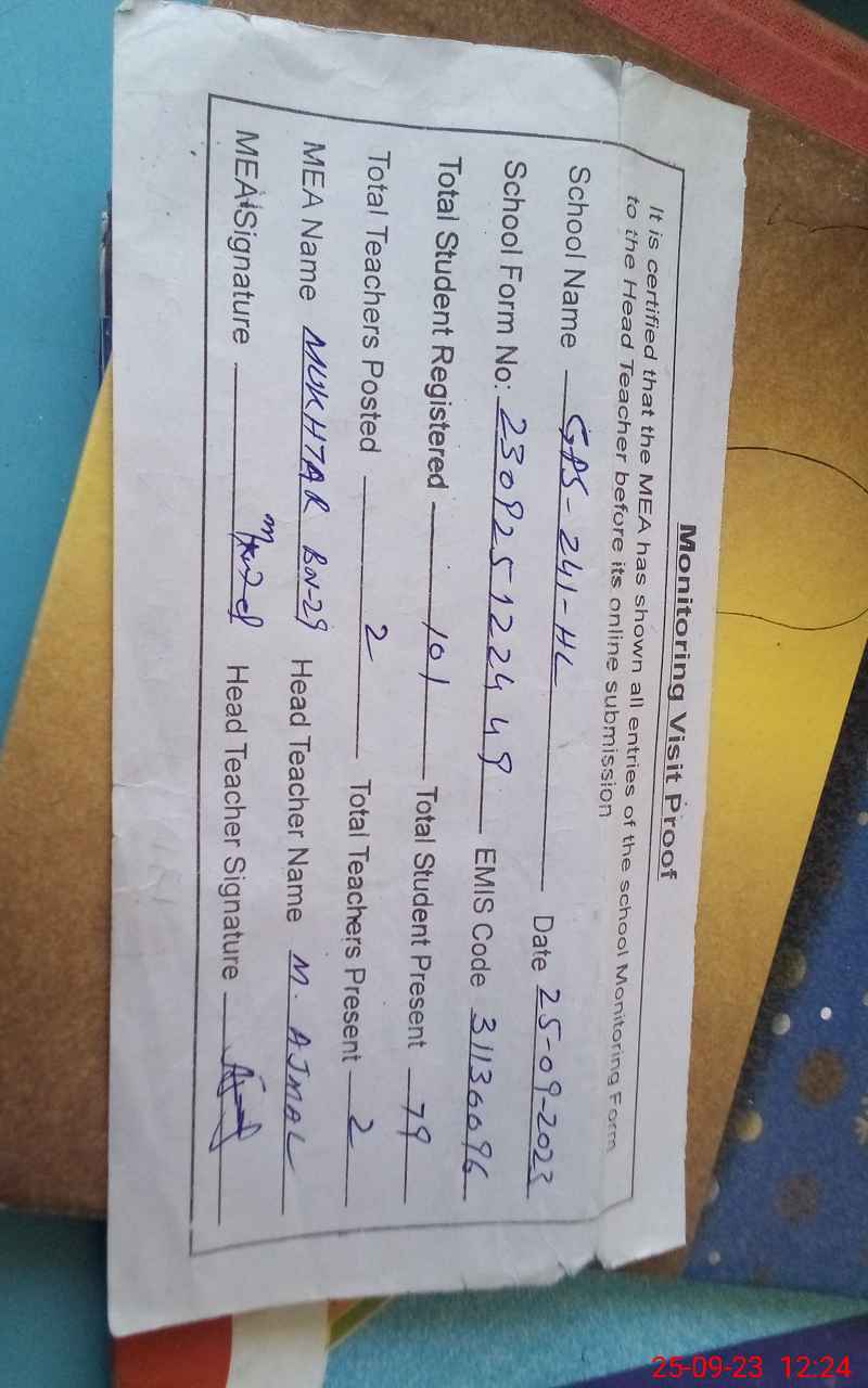 | EMIS Code: 31130096 | Name of School: GPS CHAK NO. 241/HL | |||