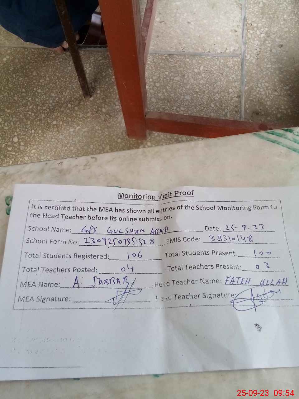 | EMIS Code: 38310148 | Name of School: GPS GULSHAN ABAD PO KAMAR MUSHANI | |||