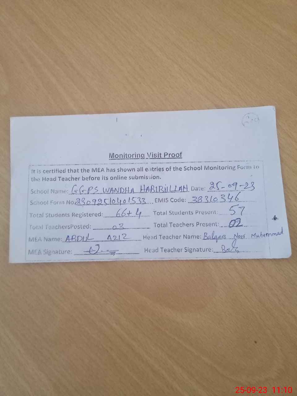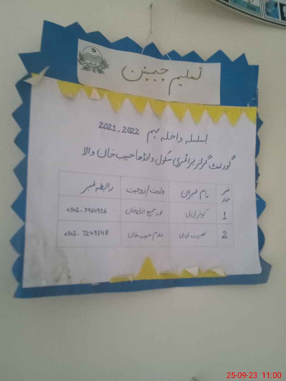 | EMIS Code: 38310346 | Name of School: GGPS WANDHA HABIB ULLAH KHAN WALA | |||