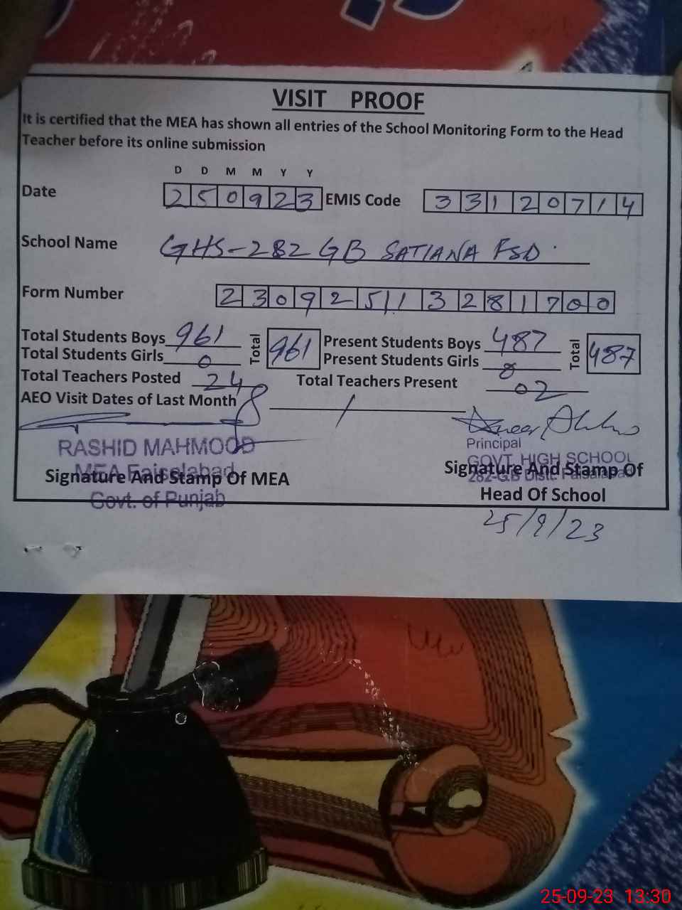 | EMIS Code: 33120714 | Name of School: GHSS CHAK NO 282 GB | |||