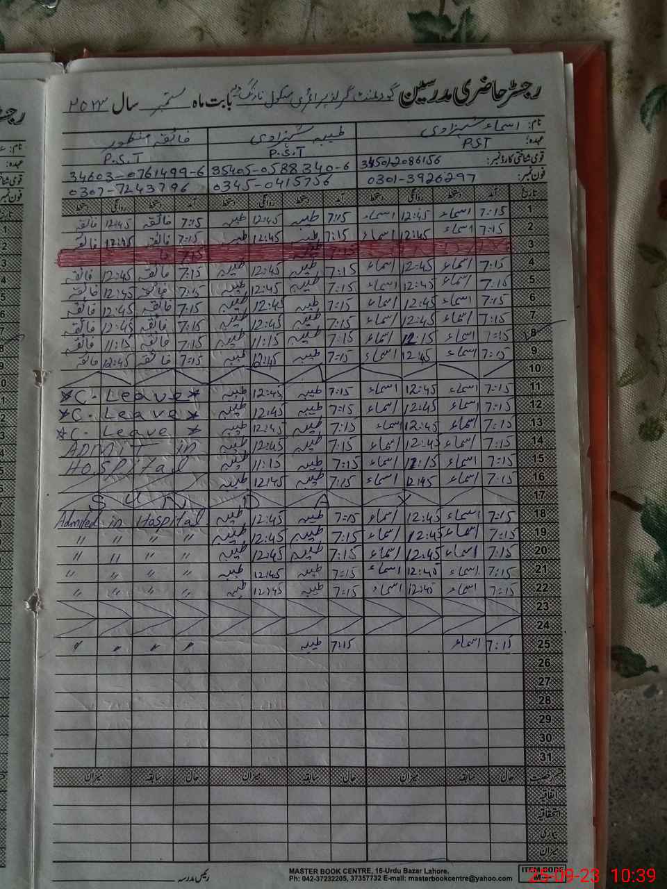 | Name: AS**** SH**** Designation: (School Headmaster's/Headmistress's) PST Phone/Cell Number: 03**** |
