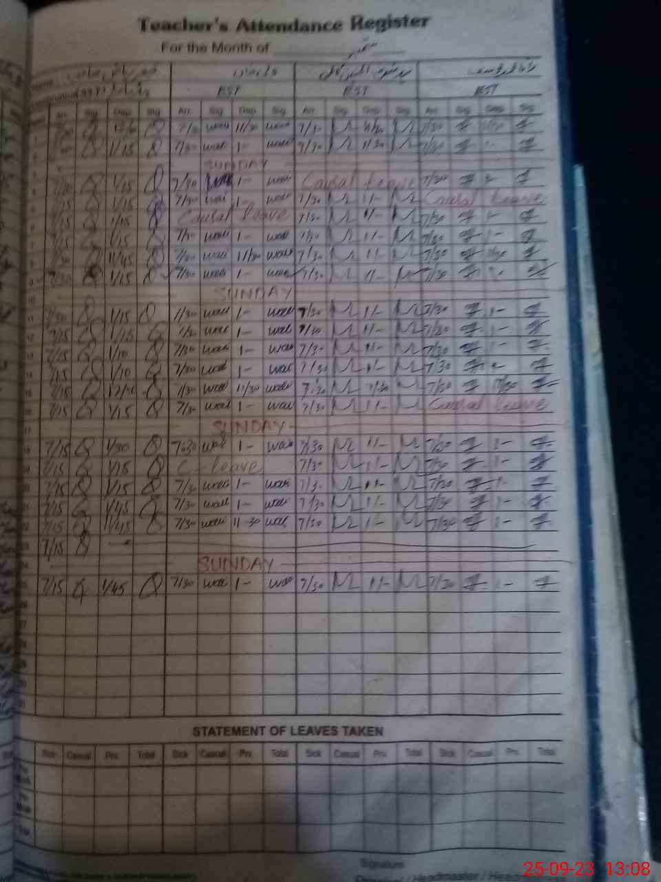 | Leave | Duty | Absent | Maternity | Medical | Ex- Pak |