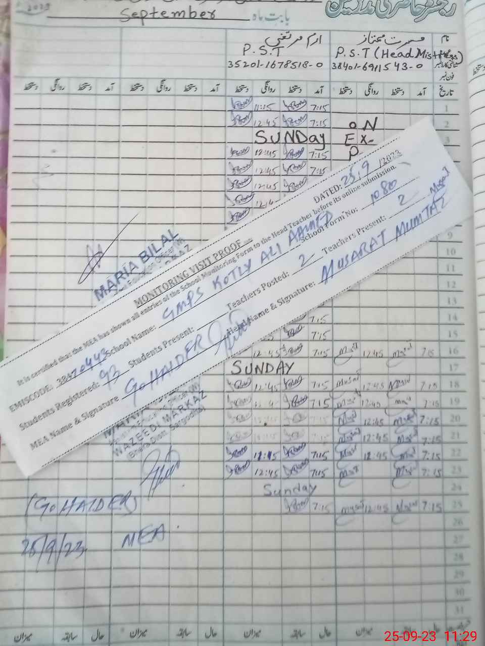 | Name: MU**** MU**** Designation: (School Headmaster's/Headmistress's) PST Phone/Cell Number: 03**** |