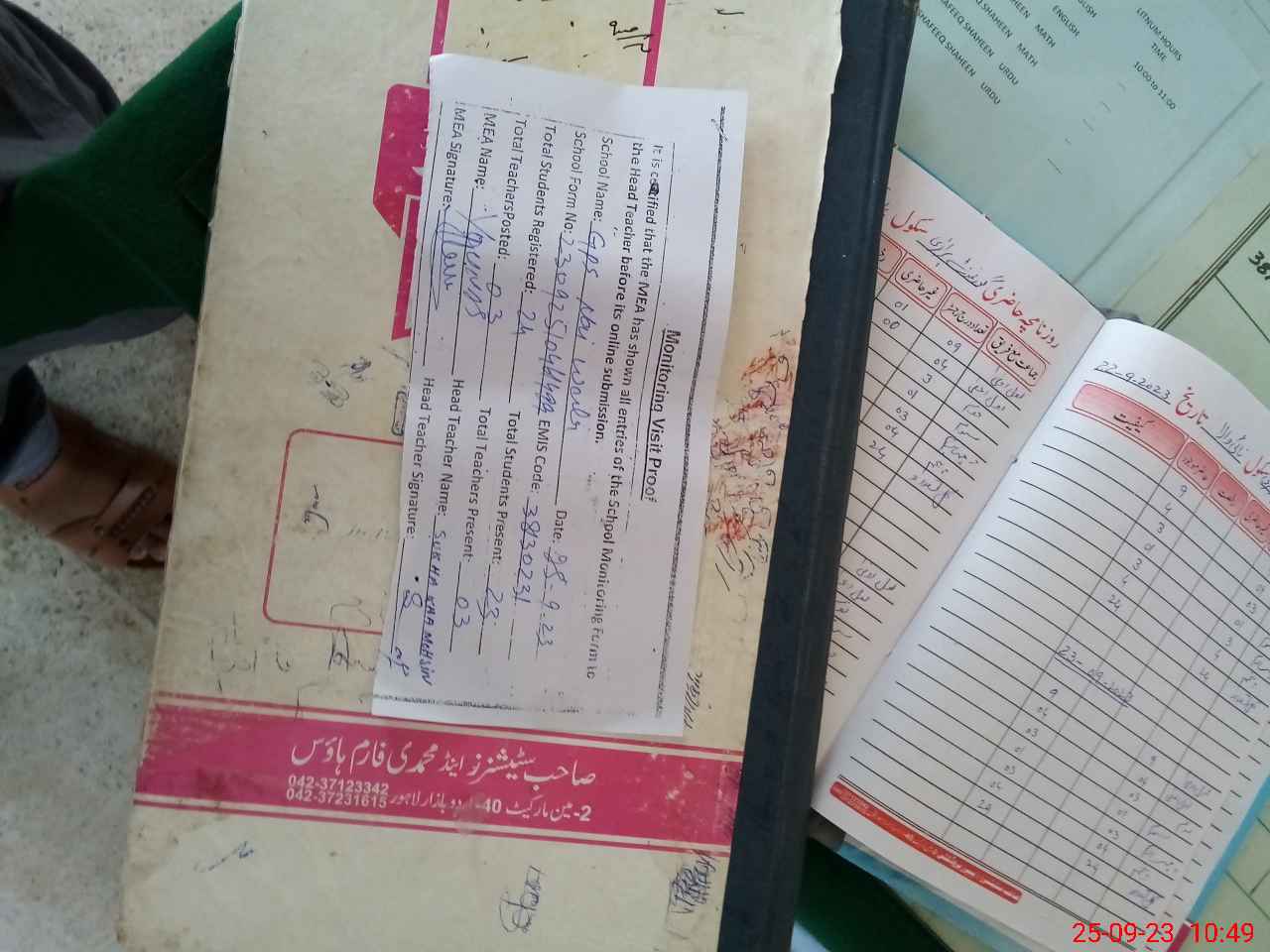 | Attendance Register | Head Teacher | MEA with School | Visit Proof |