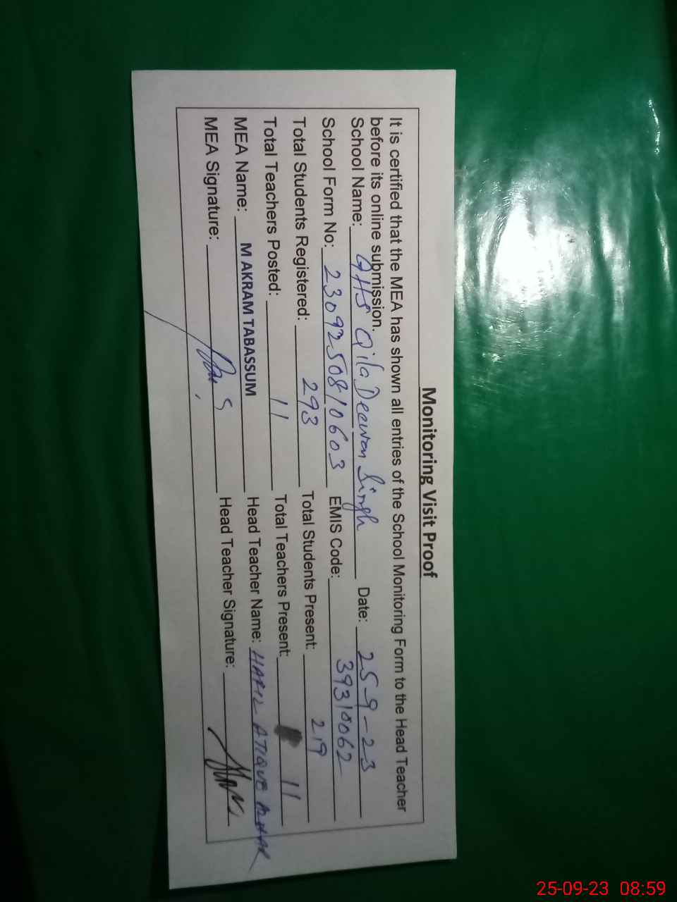 | EMIS Code: 39310062 | Name of School: GHS QILA DEWAN SINGH | |||