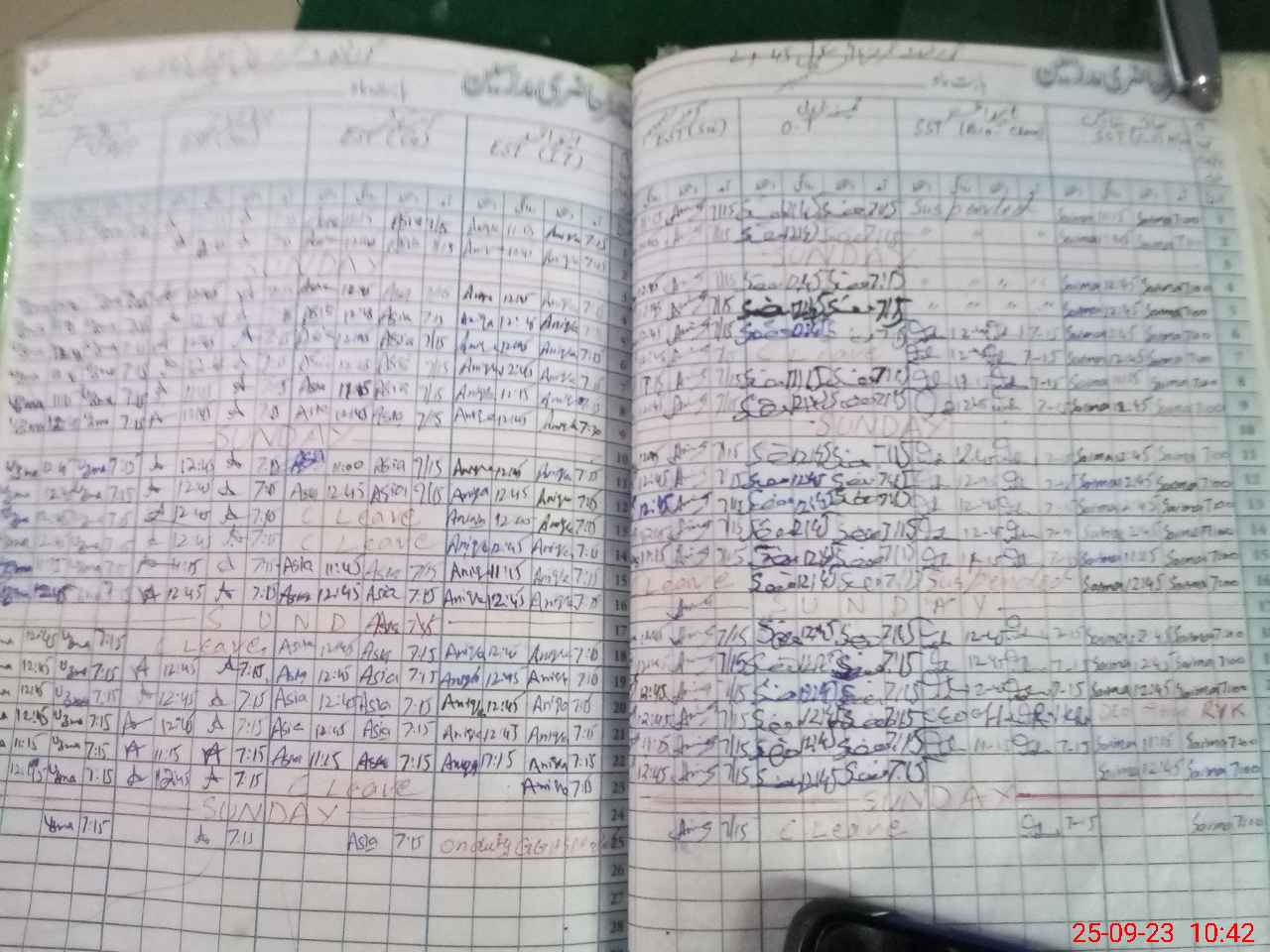 | Leave | Duty | Absent | Maternity | Medical | Ex- Pak |