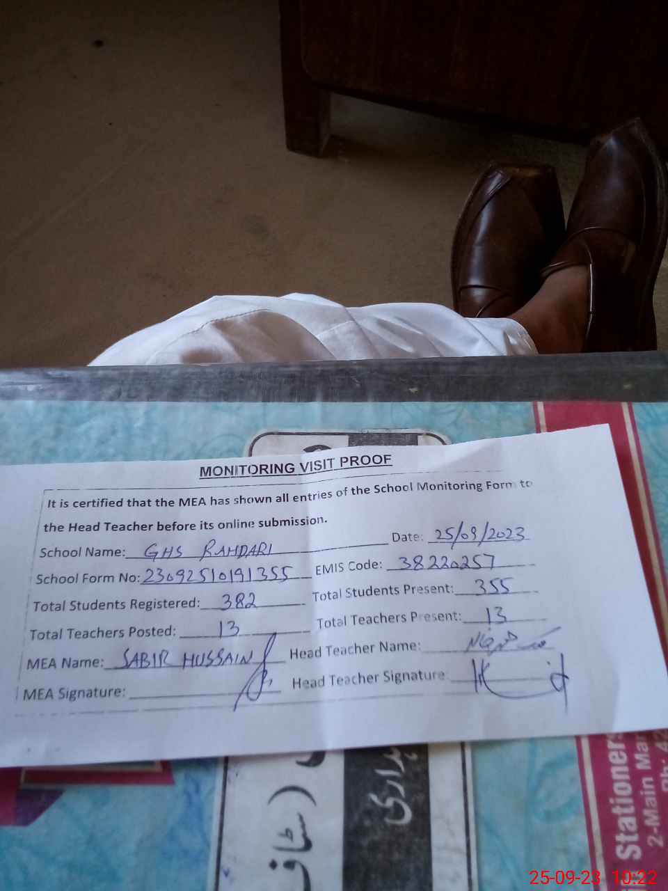 | EMIS Code: 38220257 | Name of School: GHS RAHDARI | |||