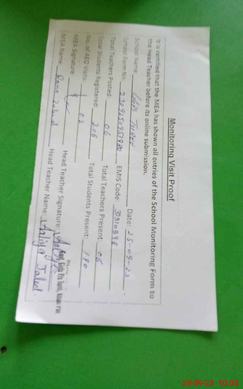 | EMIS Code: 31310398 | Name of School: GGPS TUREE (After Noon) | |||