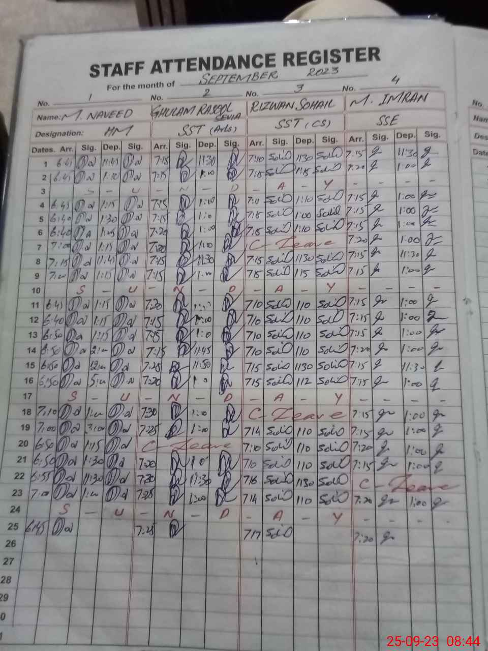 | CNIC | Full Name | Designation | R/C | Absence During Last Calender Month |