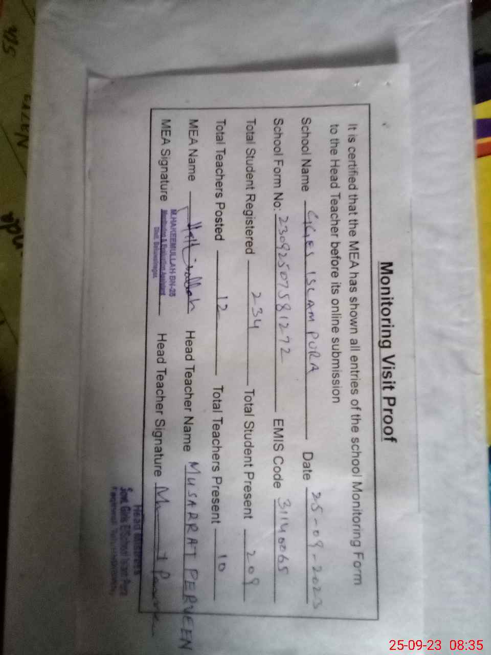 | EMIS Code: 31140065 | Name of School: GGES ISLAM PURA HAROON ABAD | |||
