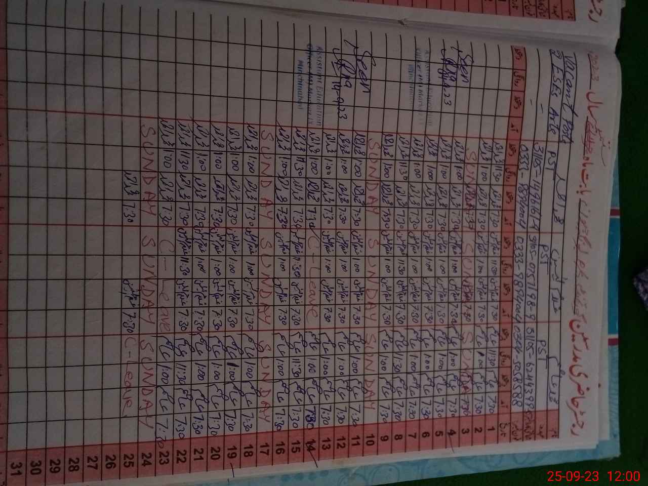 | CNIC | Full Name | Designation | R/C | Absence During Last Calender Month |