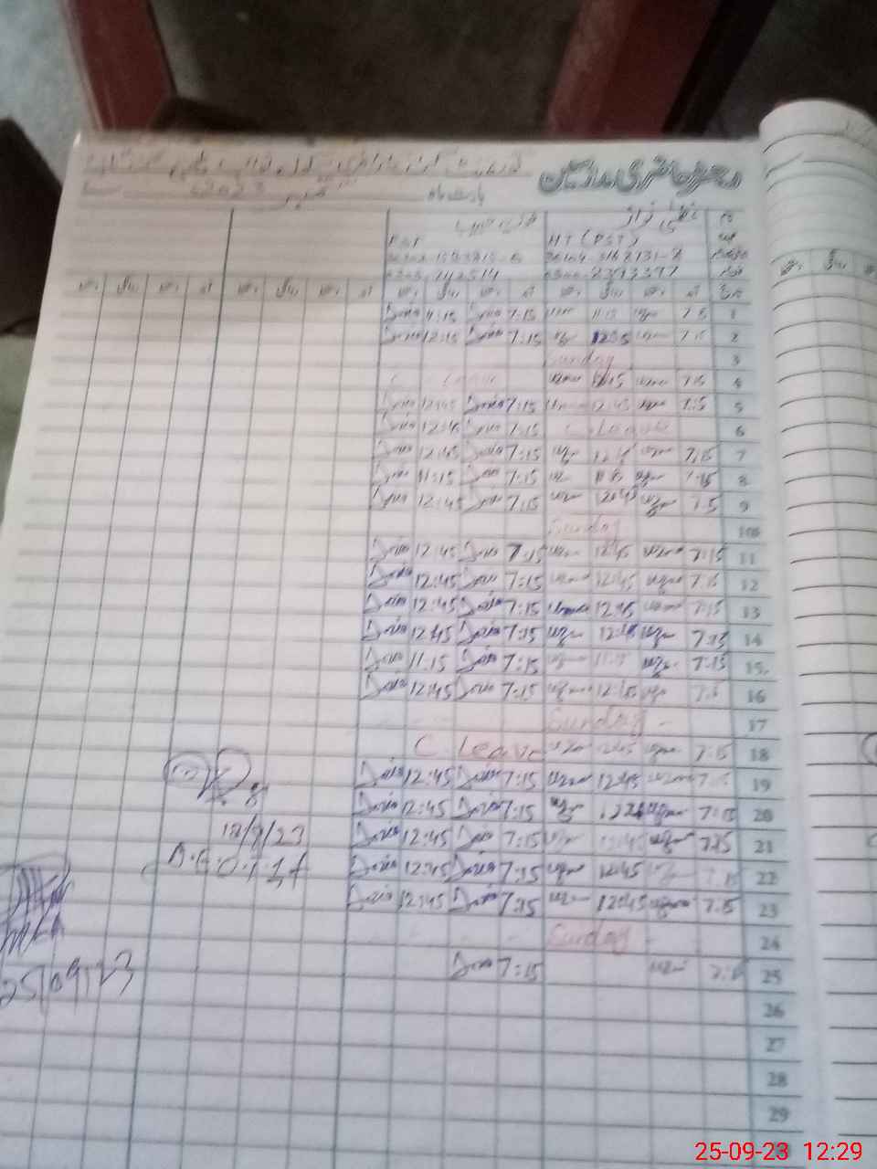 | CNIC | Full Name | Designation | R/C | Absence During Last Calender Month |