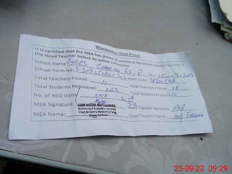 | Certified that this School was Inspected by the Undersigned MEA/DMO Today and the Information Stated Above is as Per Record. | |||||