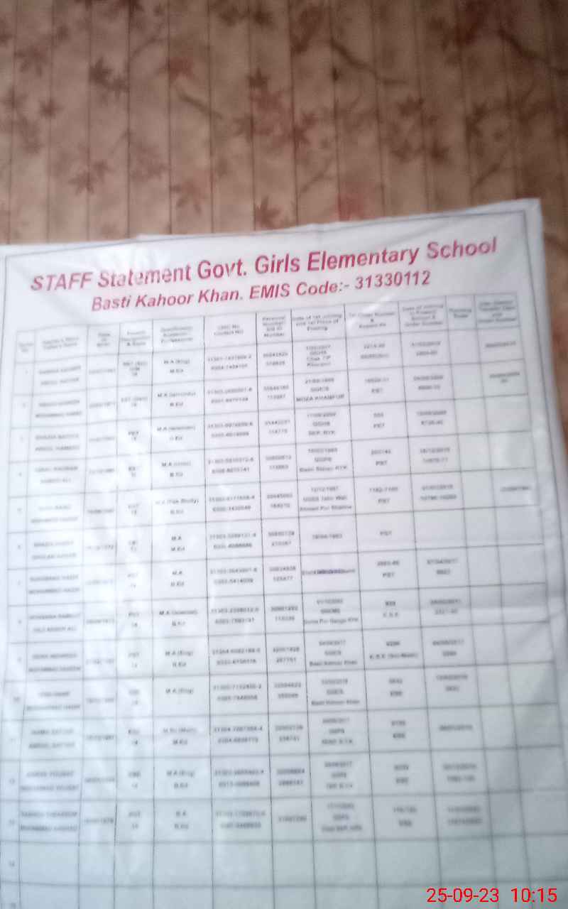 | EMIS Code: 31330112 | Name of School: GGES BASTI KAHORE KHAN | |||