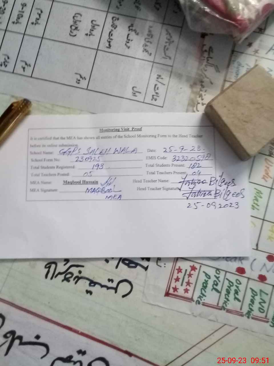 | EMIS Code: 32320598 | Name of School: GGPS SALEH WALA | |||
