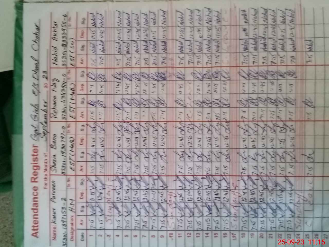 | CNIC | Full Name | Designation | R/C | Absence During Last Calender Month |