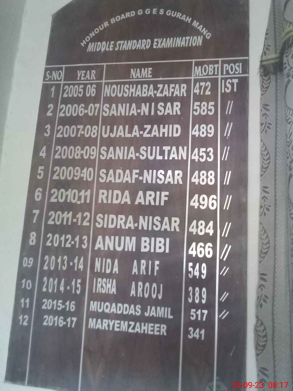 | Certified that this School was Inspected by the Undersigned MEA/DMO Today and the Information Stated Above is as Per Record. | |||||