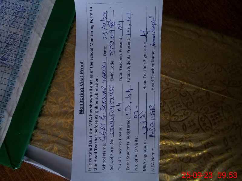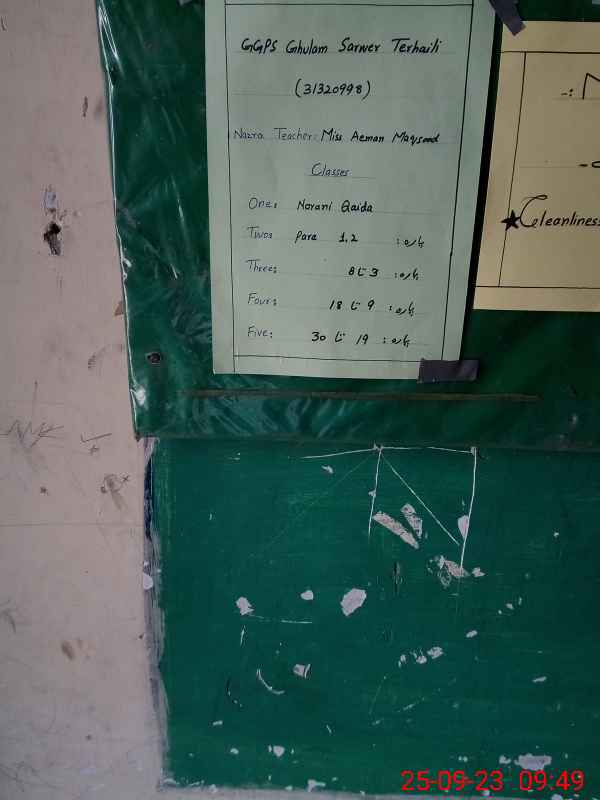 | EMIS Code: 31320998 | Name of School: GGPS GHULAM SARWAR TARHALI | |||