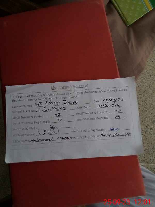 | EMIS Code: 31320214 | Name of School: GPS KHACHI JADEED | |||