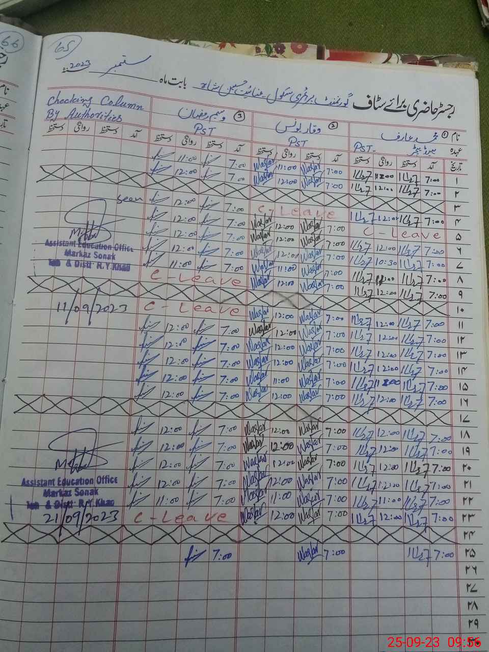 | CNIC | Full Name | Designation | R/C | Absence during last cal. month |