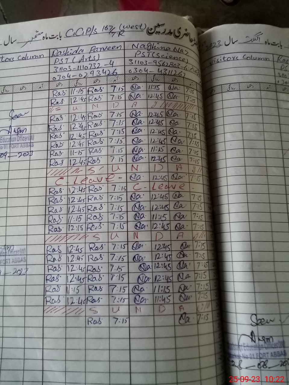 | CNIC | Full Name | Designation | R/C | Absence During Last Calender Month |