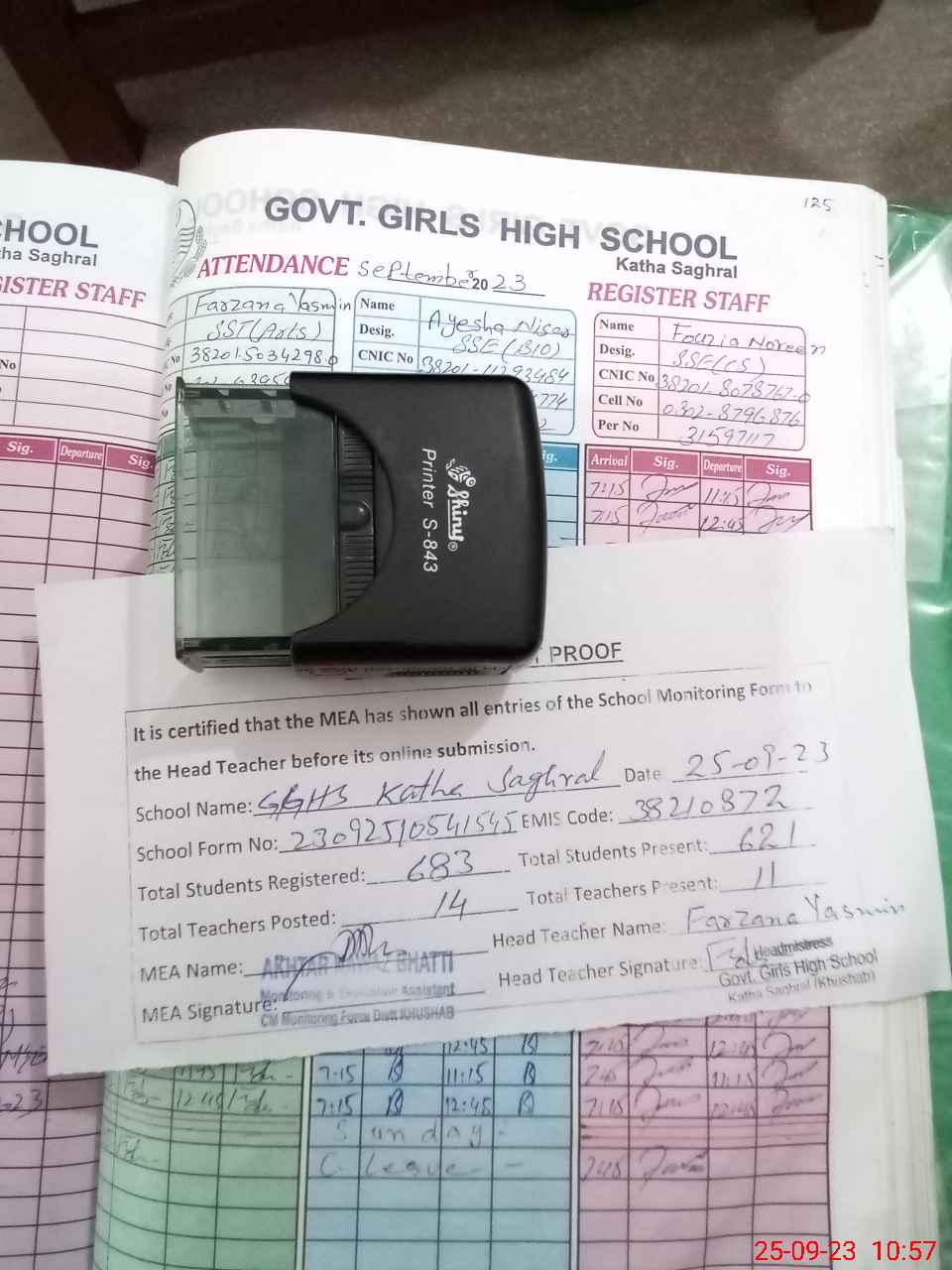 | Attendance Register | Head Teacher | MEA with School | Visit Proof |