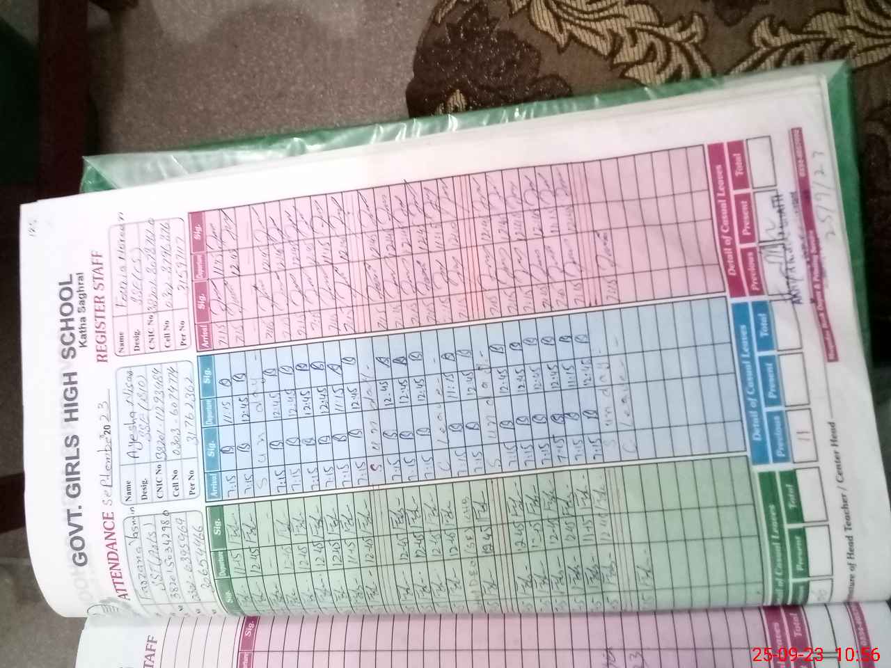 | CNIC | Full Name | Designation | R/C | Absence During Last Calender Month |