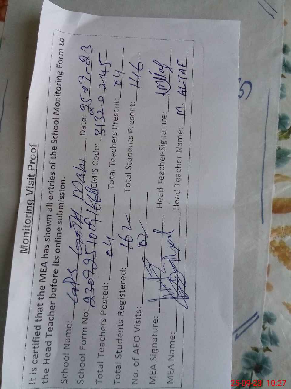 | EMIS Code: 31320245 | Name of School: GPS GOTH MAHI | |||