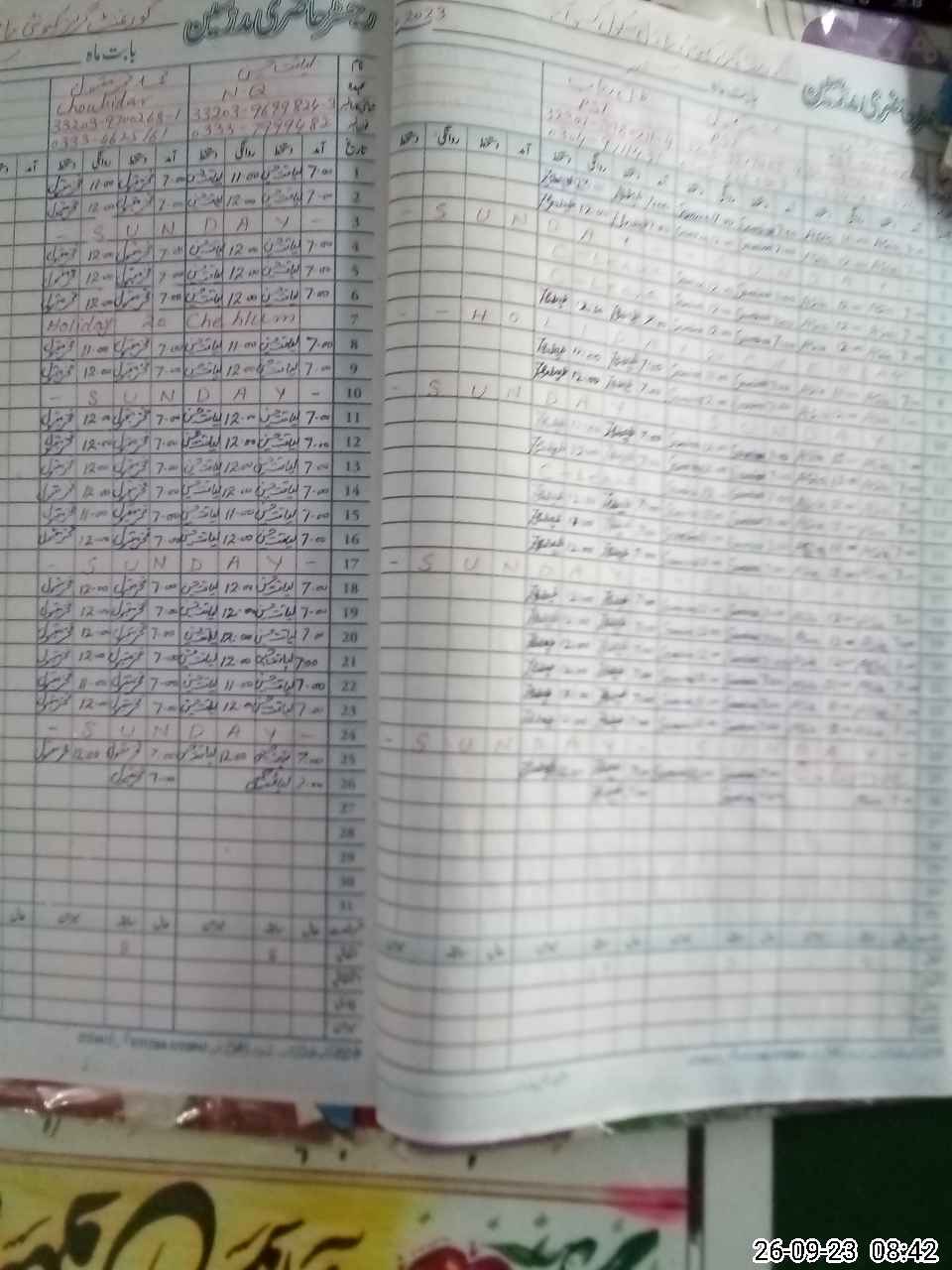| CNIC | Full Name | Designation | R/C | Absence During Last Calender Month |