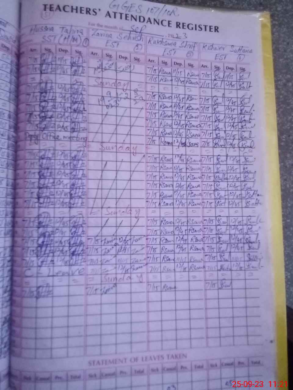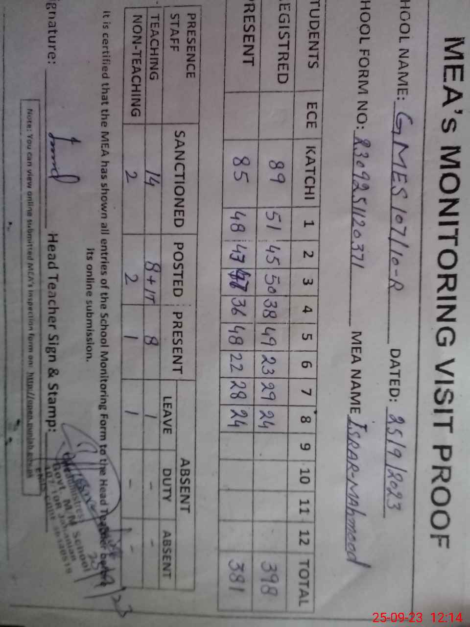 | Attendance Register | Head Teacher | MEA with School | Visit Proof |