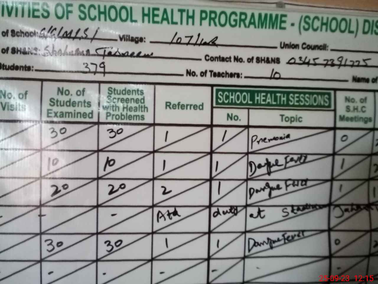 | School Visited by School Health & Nutrition Supervisor (No. of Visits) | Name1: | Shaheena Tasneem | Name2: | ||