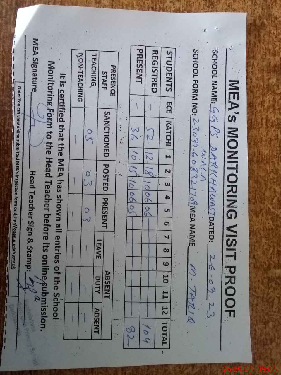 | EMIS Code: 36410367 | Name of School: GGPS DARKHAST WALA, KABIRWALA | |||